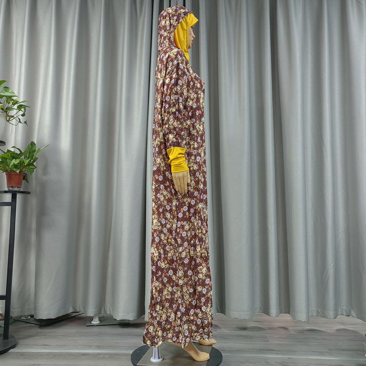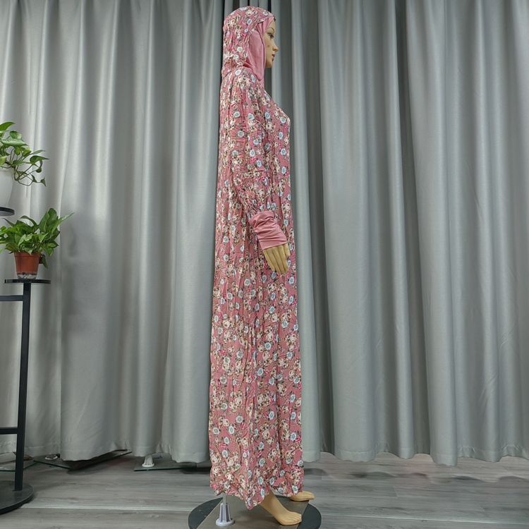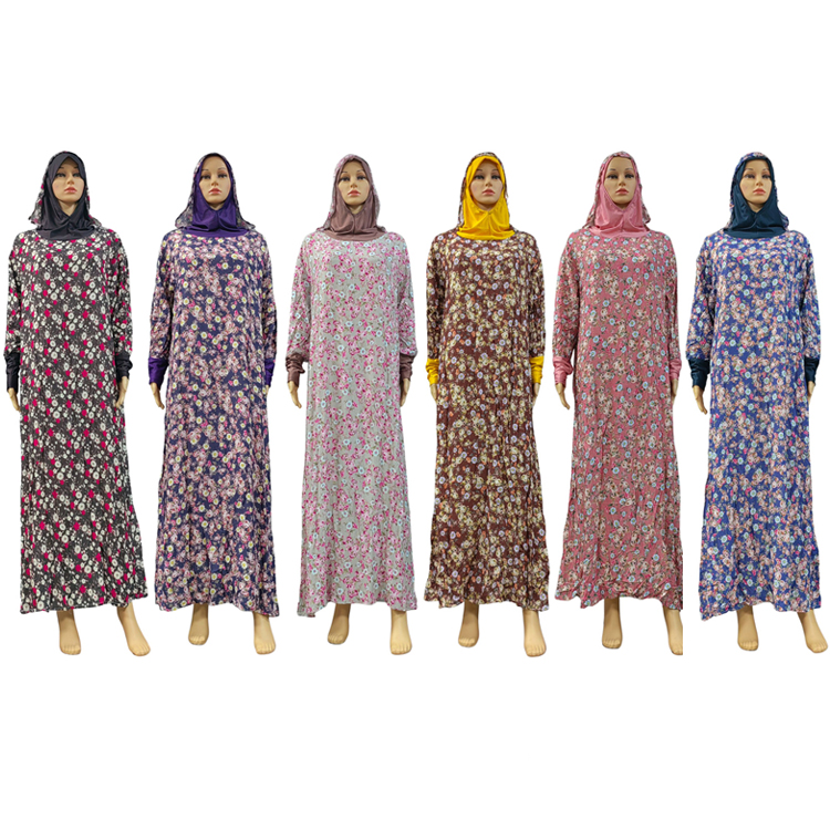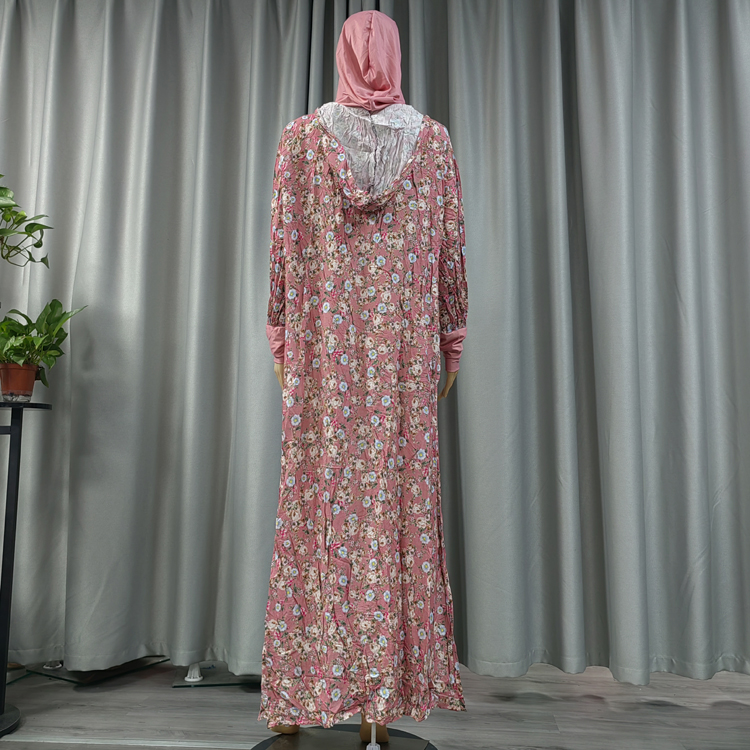 100% Viscose Lace Hijab Robe Islamic Muslim Young Women Floral Double layered hood Dress Abaya Dubai Arab Thai Prayer Garment Turkey Caftan Dress