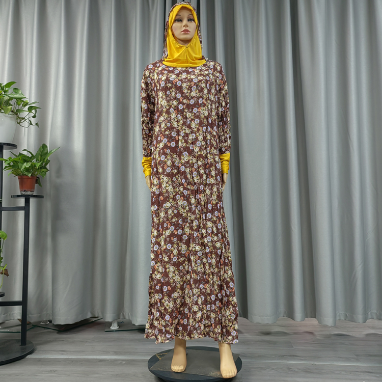 100% Viscose Lace Hijab Robe Islamic Muslim Young Women Floral Dress Abaya Dubai Arab Thai Prayer Garment Turkey Caftan Dress