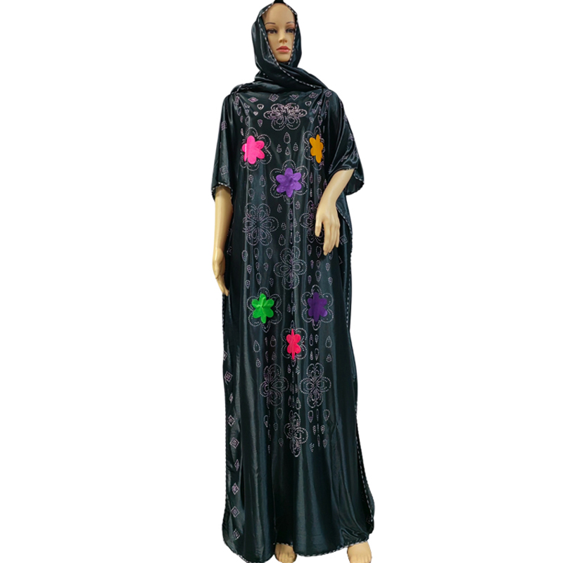 2023 African Summer Bright Colors Kaftan Muslim Women Dresses India Caftan Traditional Wear Silk Satin Africa Femme Maxi Casual Abaya With Scarf hijab boubou