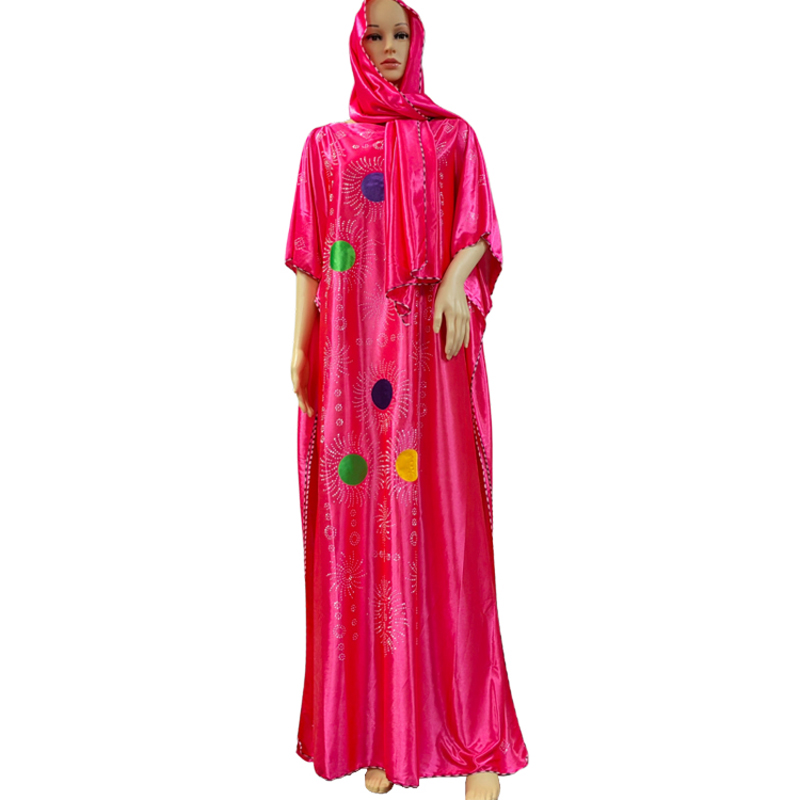 2023 African Summer Bright Colors Kaftan Muslim Women Dresses India Caftan Traditional Wear Silk Satin Africa Femme Maxi Casual Abaya With Scarf hijab