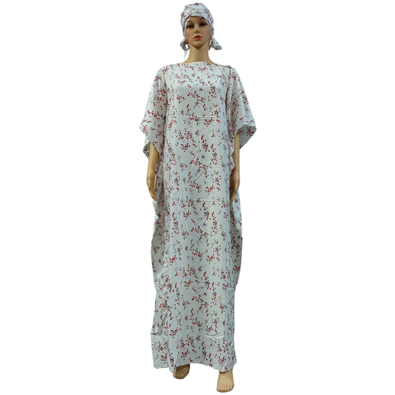 2023 New Muslim Dress elegant temperament Women Abaya Dress with Scarf Dashiki African Short Sleeve Oversized long skirt Floral Printed Polyester Cotton Loose Dress
