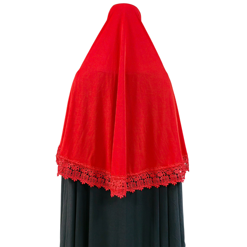 2023 Women Muslim Prayer Large Size Khimar Lace Trim Shawl Islamic Headscarf Dubai Saudis Turkey Arabic Solid color fashion Clothing Hijab Headscarf Modest With Lace Elegant