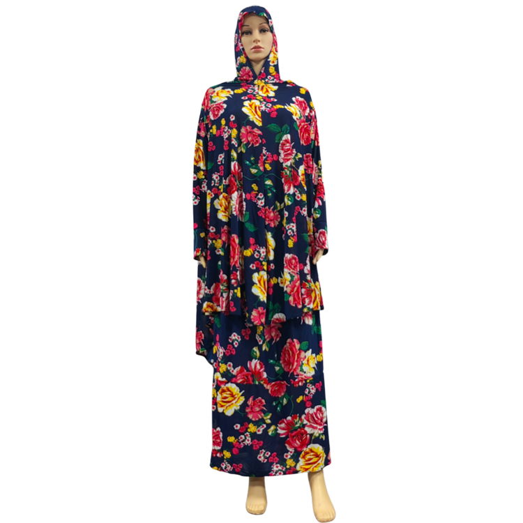 6 Color 4 Size a Dozen Wholesale Flower Print Two-piece Set Hijab Abaya Islamic Muslim Women Prayer Daily Clothing Dress Caftan