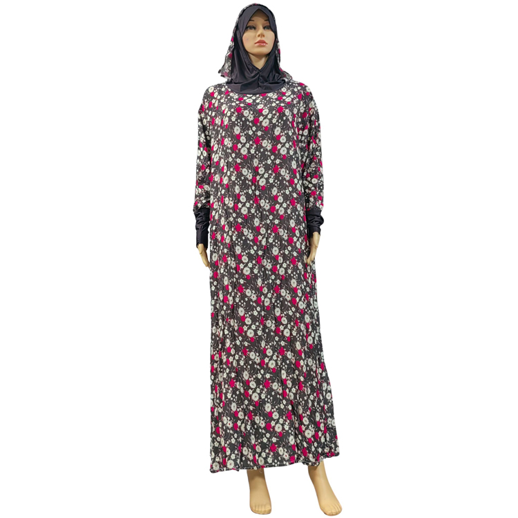 EID 100% Viscose Hot selling Hijab Robe Islamic Muslim Young Women Floral Double layered hood Dress Abaya Dubai Arab Thai Prayer Garment Turkey Caftan Dress robe