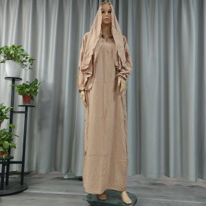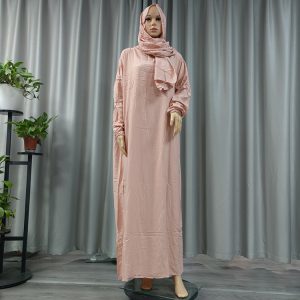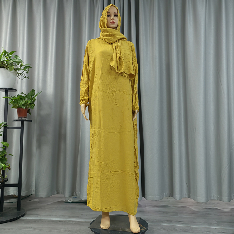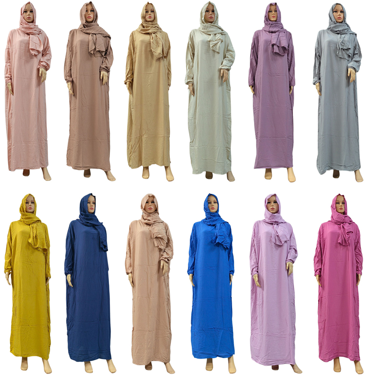 Eid Model Ramadan Prayer Muslim Solid Color Women Dubai Turkey Caftan Middle East Ladies Hijab Scar Hooded Robe Dress Solid color Cotton Abaya Dress