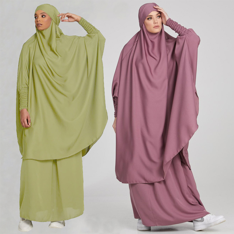 Grand introduction to this fashion traditional Muslim long dress two-piece set, solid color long dress multi-color choice you, Neda fabric wear-resistant wear comfortable soft, sleeve design more convenient