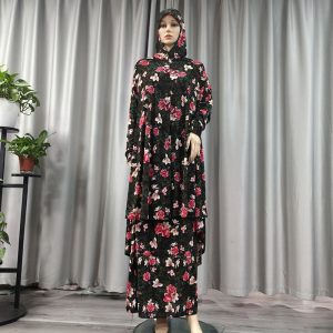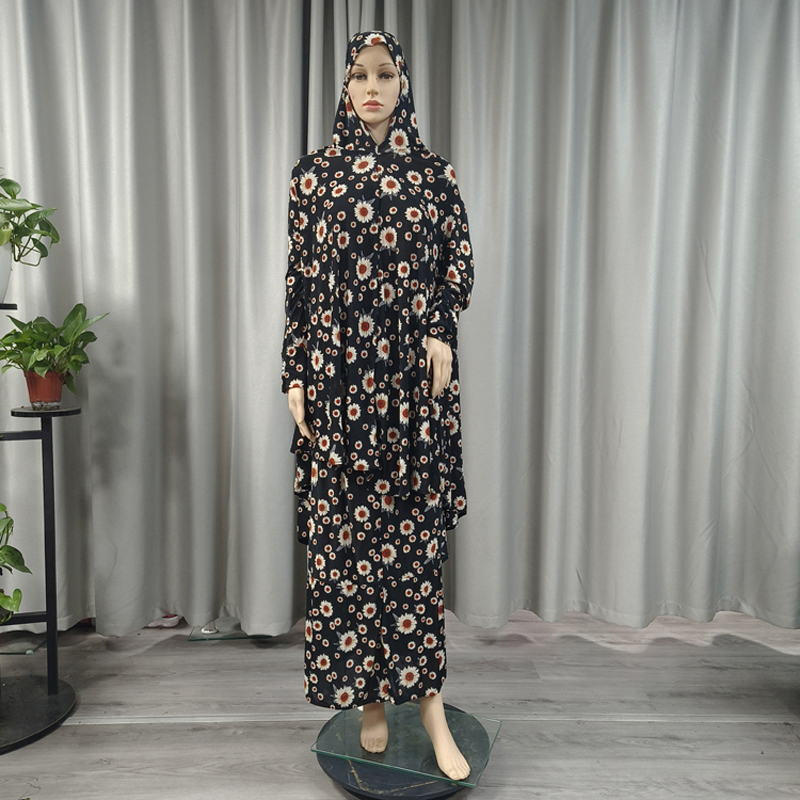 Factory Hot Wholesale Daily fashion Style Muslim Hijab Dress Traditional Two-piece Set Abaya Islamic Women Vintage Floral Print Maxi Dress Abaya