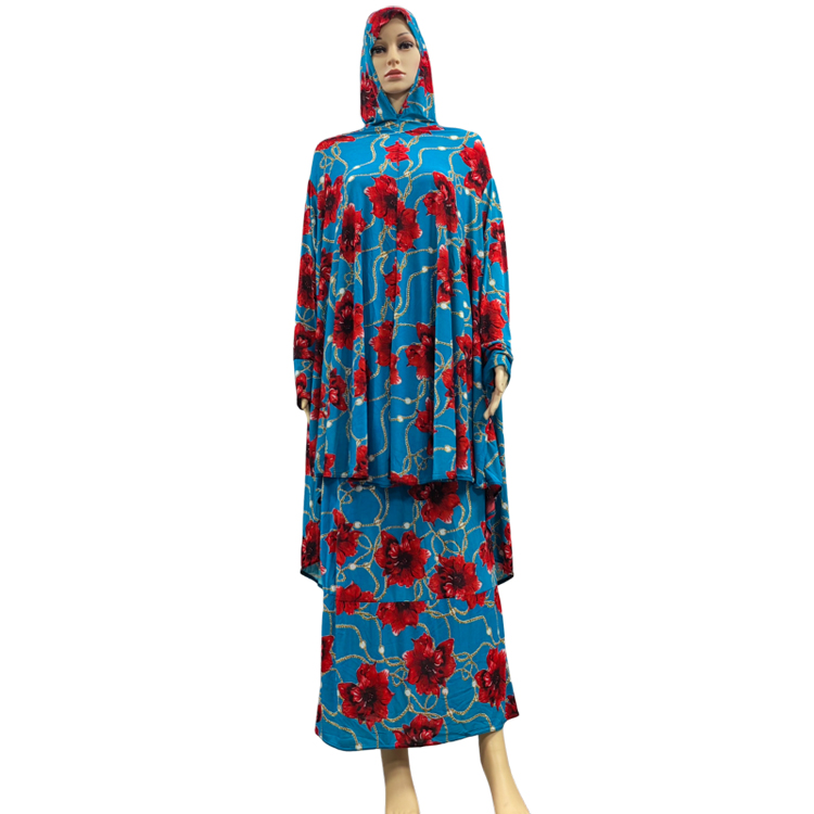 Factory price Flower Print Two-piece Set Hijab Abaya robe Islamic Caftan Moroccan Muslim Women tradition Prayer Daily Clothing Dress