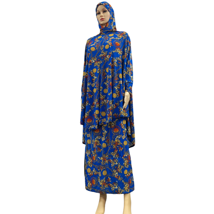 Factory price Traditional fashion Flower Print Two-piece Set Hijab Abaya robe Islamic Caftan Moroccan Muslim Women elegant Prayer Daily Clothing Dress