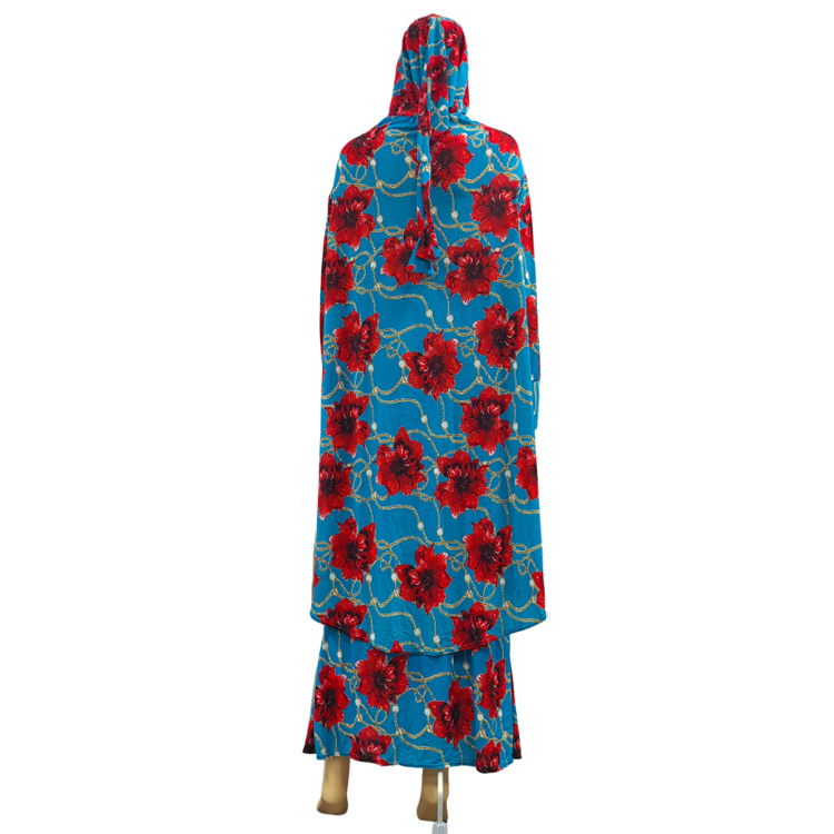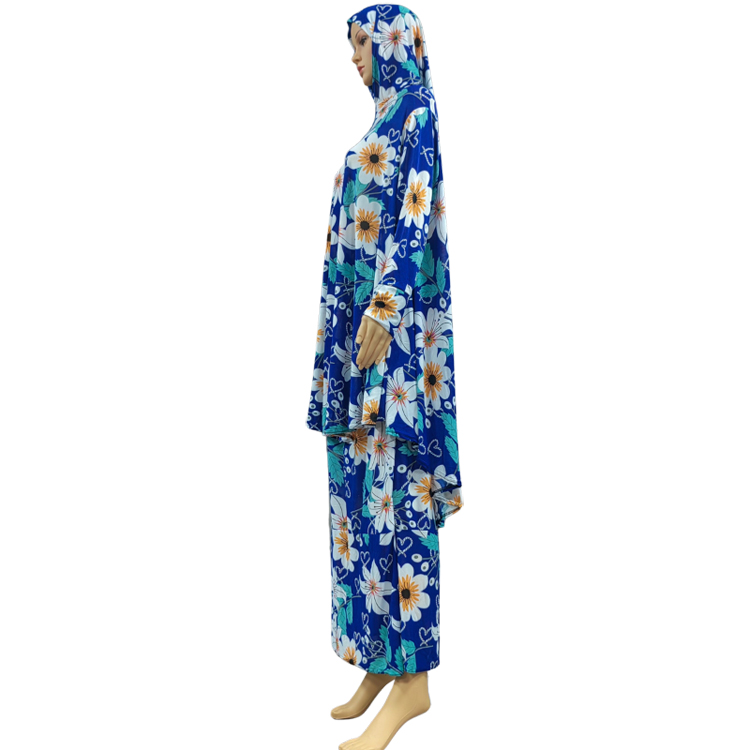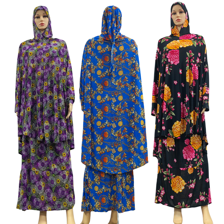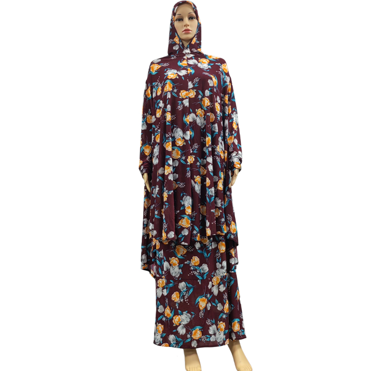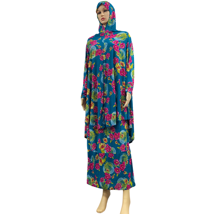 Factory price Traditional fashion Flower Print Two-piece Set Hijab Abaya robe Islamic Caftan Moroccan Muslim Women elegant Prayer Daily Dress