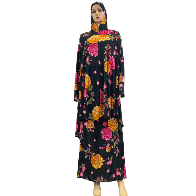 Factory price Wholesale Flower Print Two-piece Set Hijab Abaya robe Islamic Caftan Moroccan Muslim Women tradition Prayer Daily Clothing Dress