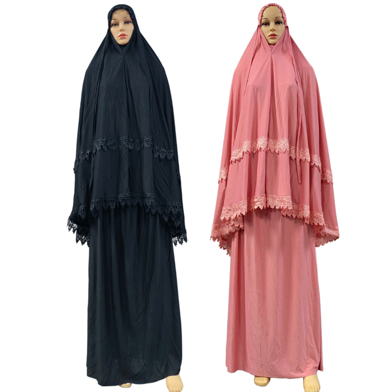 Formal Muslim Prayer Garment Sets Women Hijab Dress Abaya Islamic Clothing Turkey Lace lace binding Namaz Long Dress Khimar Djellaba Abaya