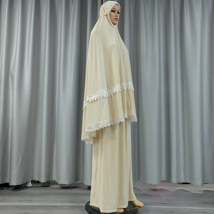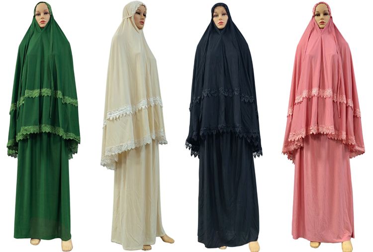 Formal Muslim Prayer Garment Sets Women Hijab Dress Abaya Islamic Clothing Turkey Lace Namaz Long Dress Khimar Jurken Djellaba Abayas With Lace