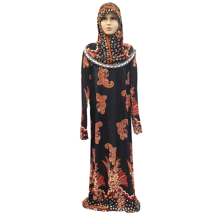 High quality ice silk Muslim Islam Turkey Prayer Garment Girls Hooded Different Floral Print Abaya long Dress With Hijab Kid Children Robe Dress Soft Comfortable fabric