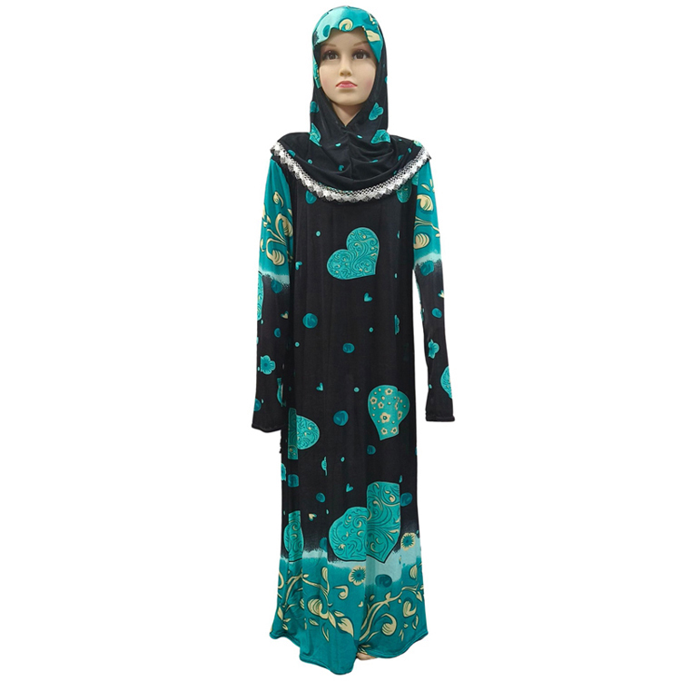 High quality ice silk Soft Comfortable fabric Muslim Islam Turkey Prayer Garment Girls Hooded with lace Different Floral Print Abaya Dress With Hijab Kid Children Robe Dress