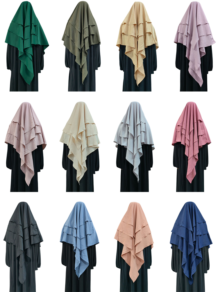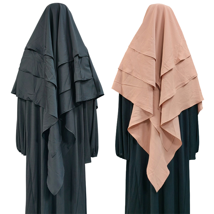 Hot Newets elegant temperament tradition girl hijab Factory direct delivery Dubai 3 Layer Nida Khimar Hijab Islamic Muslim Young Women Girls Long Headscarf Jilbab Headwrap Scarf Niqab