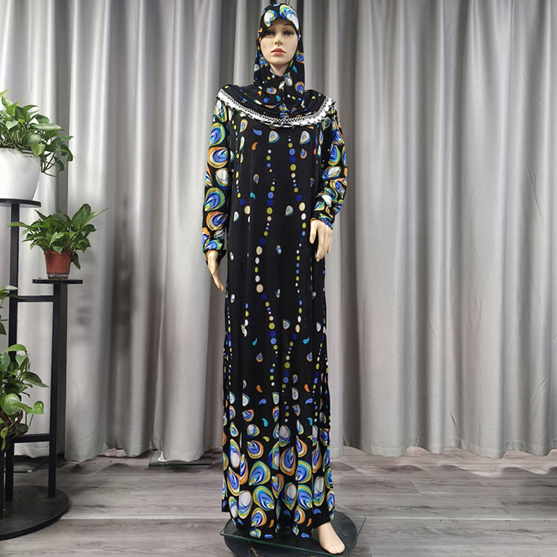 Hot Selling Daily Style Printed Muslim Long Abaya Jilbab Maxi Dress Muslim Dresses Robe Abaya For Women Lady