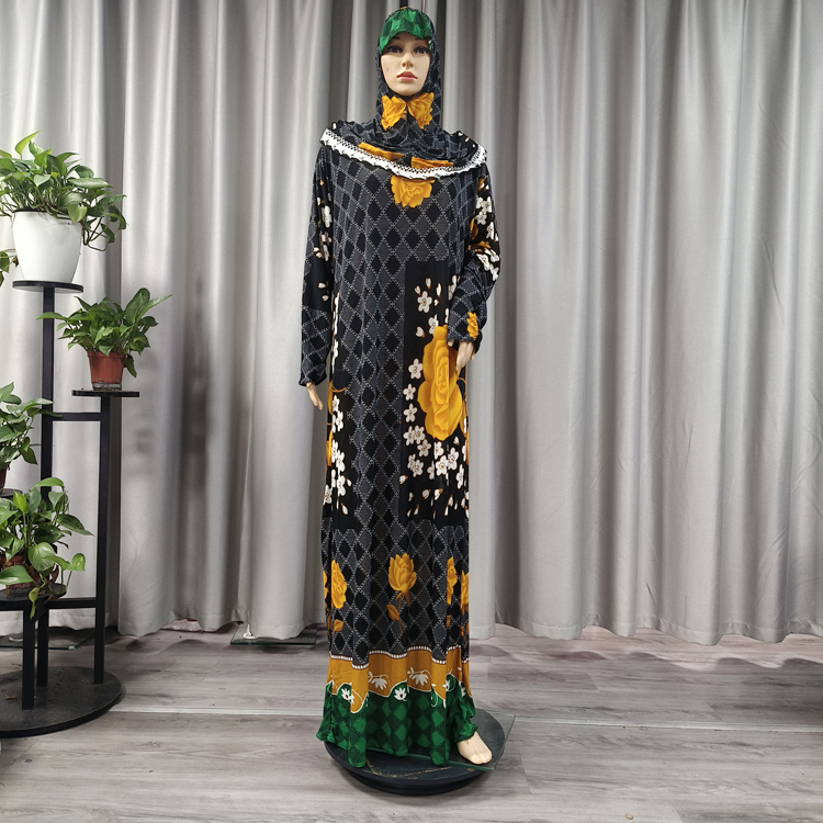 Hot Selling Embroidery Muslim Women Daily Style printing Hijab Long Dress Abaya Jilbab Maxi Dresses Robe