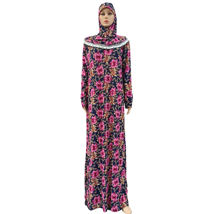 Hot Selling Muslim Women Daily Style printing Hijab scarf khimar Long loose hooded Dress Abaya Jilbab Maxi Dresses Robe With Lace
