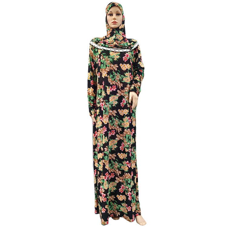 Hot Selling Muslim Women Ethnic Traditional Daily Style Floral print Hijab scarf khimar Islam Turkey Middle East Long loose hooded Dress Abaya With Lace Jilbab Maxi Dresses Robe