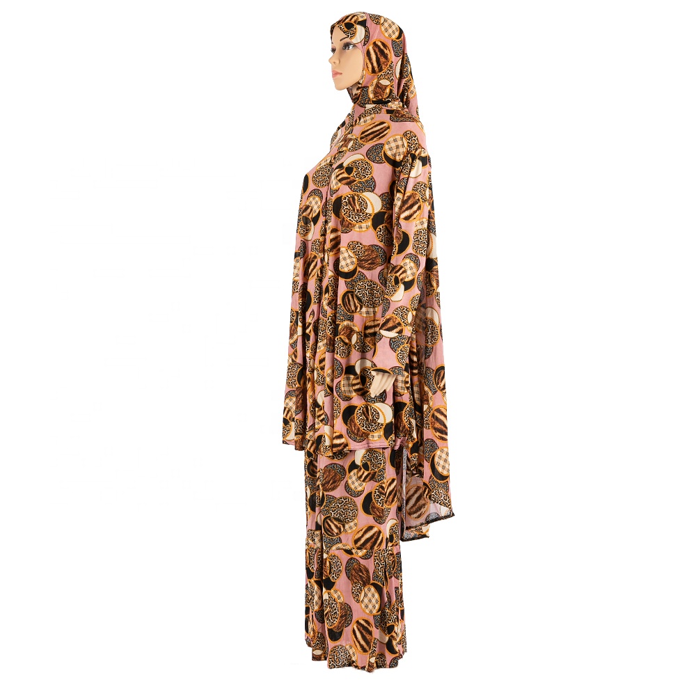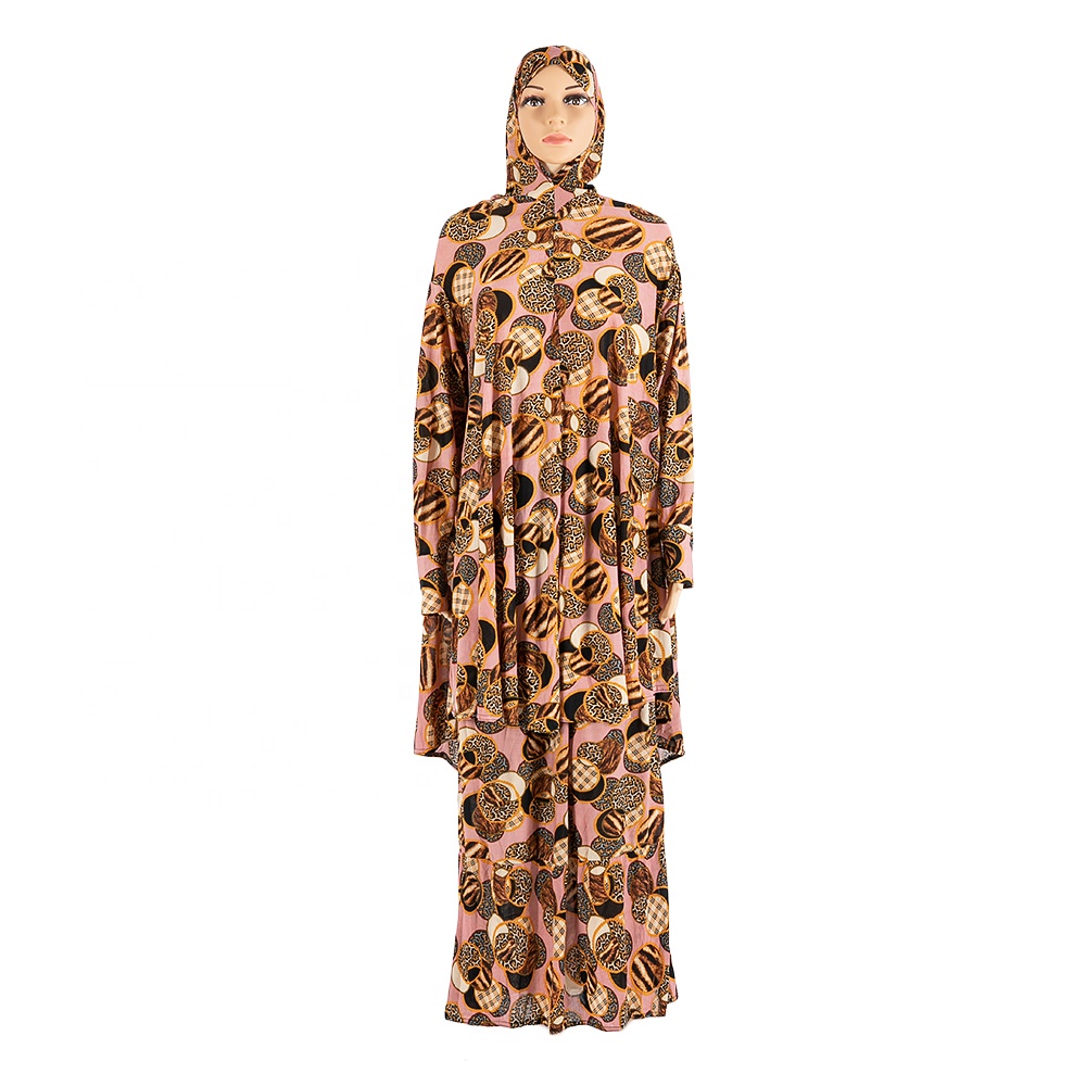 Ice silk print long-sleeved two-piece ababya orange red Muslim female dress fashion muslim dress