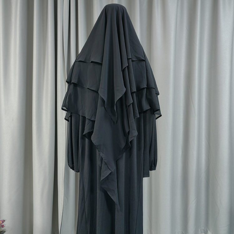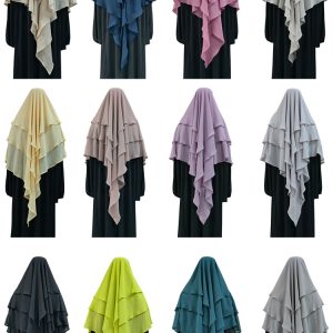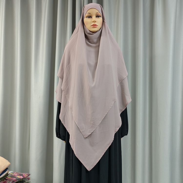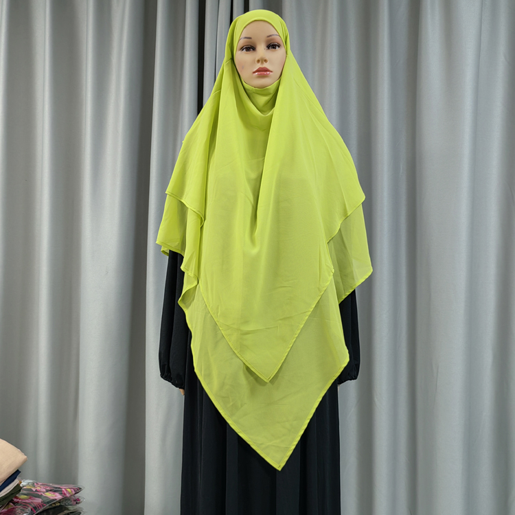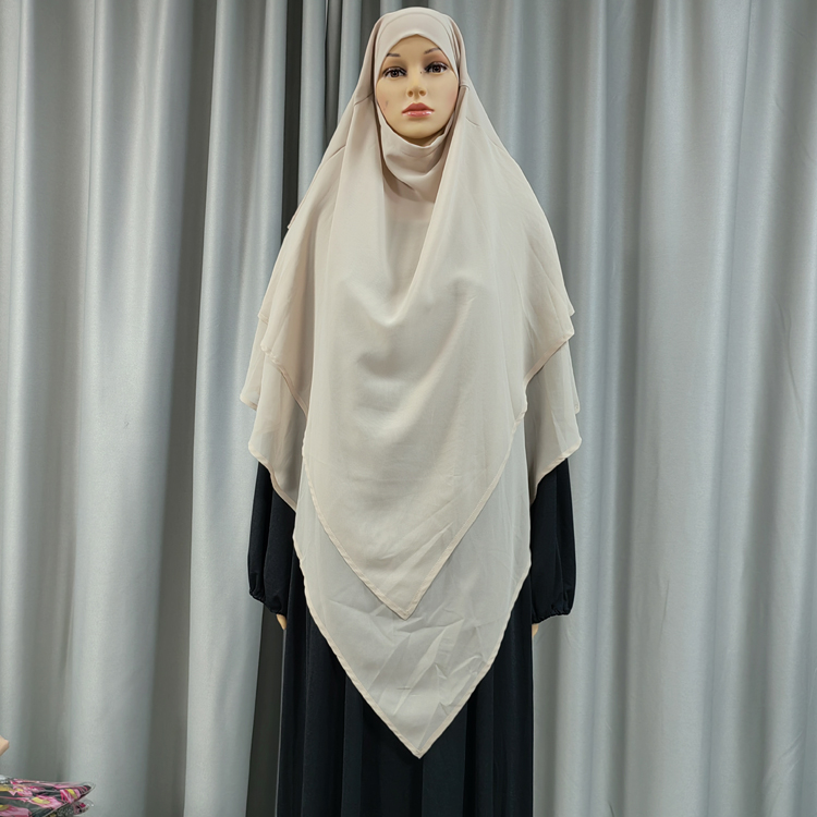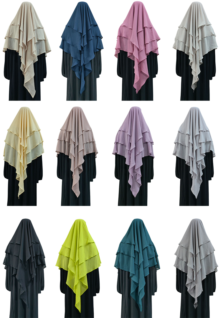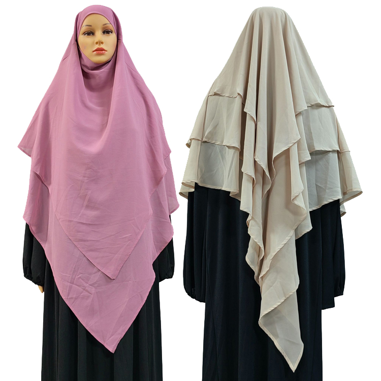 Long Triangle Khimar 3 Layer High Quality Chiffon Voiles Hijab Women Muslim Modest Fashion Prayer Hijab Islamic Clothing Jilbab