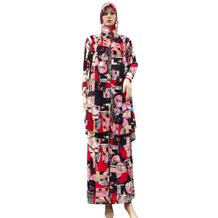 Muslim Full Cover Prayer Abaya Dress Ethnic Small Floral Print Ramadan Islamic Dress Traditional Turkey Female Two Piece Women Hijab JilbabMaxi Robe