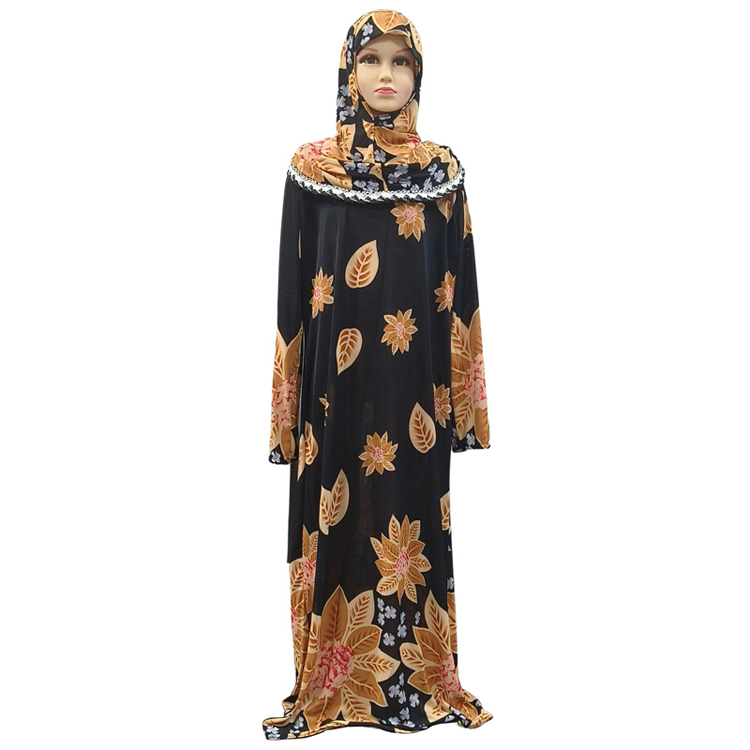 Muslim Islam Prayer Garment Girls Hooded Abaya Dress With Hijab Different Floral Print Kid Children Soft Comfortable Robe High quality ice silk fabric with lace