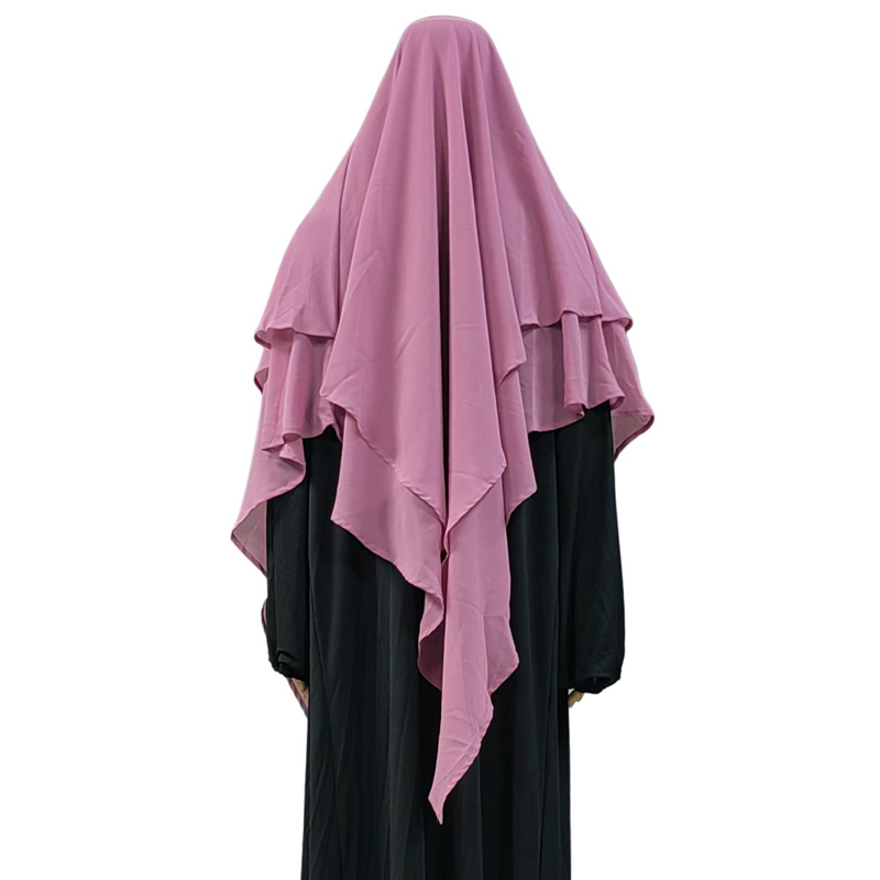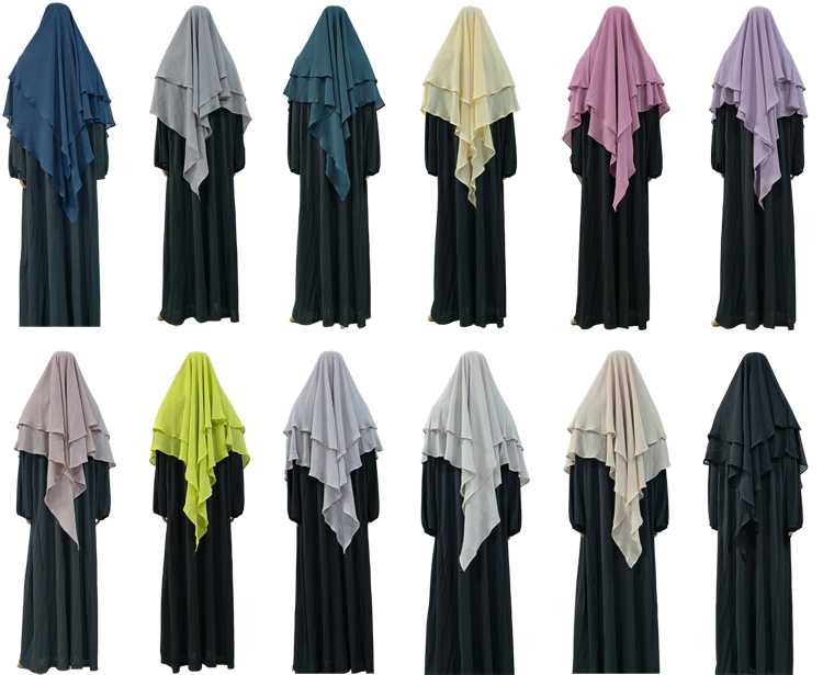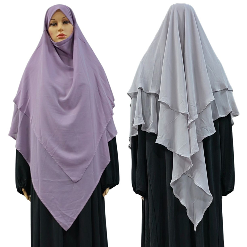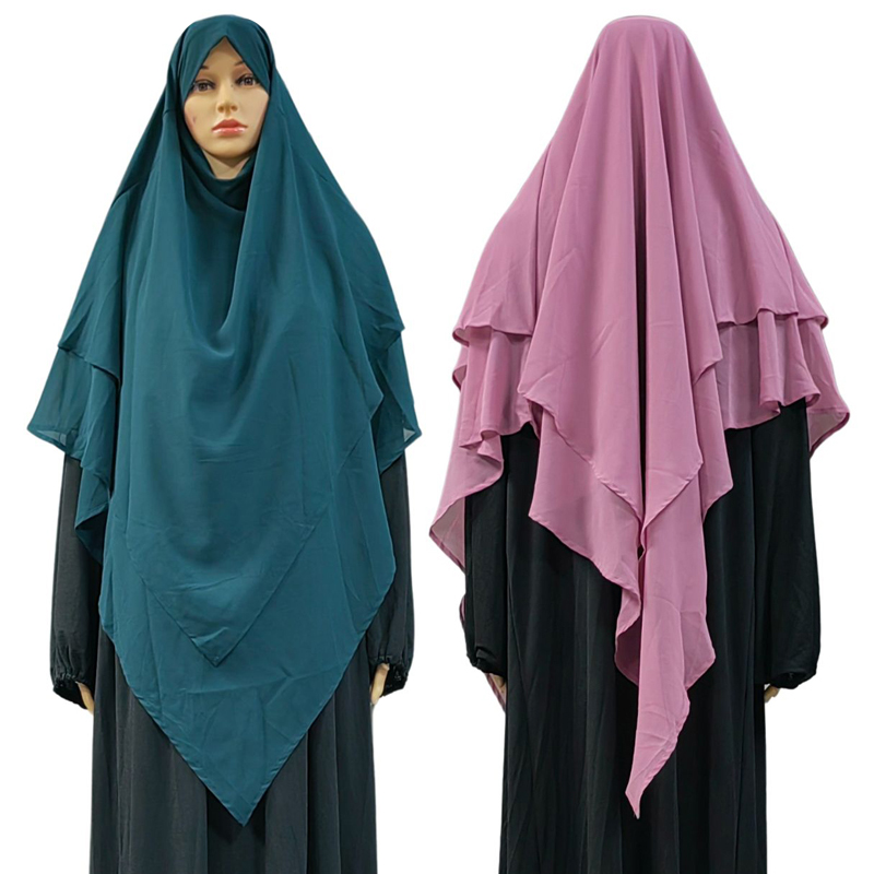 Muslim Ramadan Fashion hijab abaya Muslim Turban Hijabs for Woman Super Long Hooded 2+2 Layers solid color Chiffon Hijab Khimar Head Scarf Niqab Long Khimar Ramadan Abaya