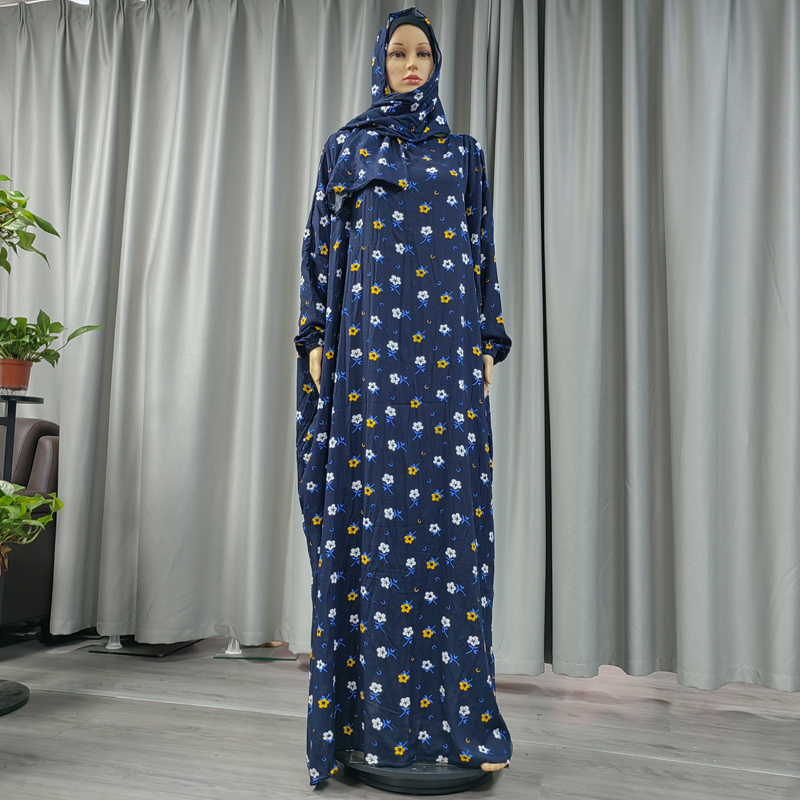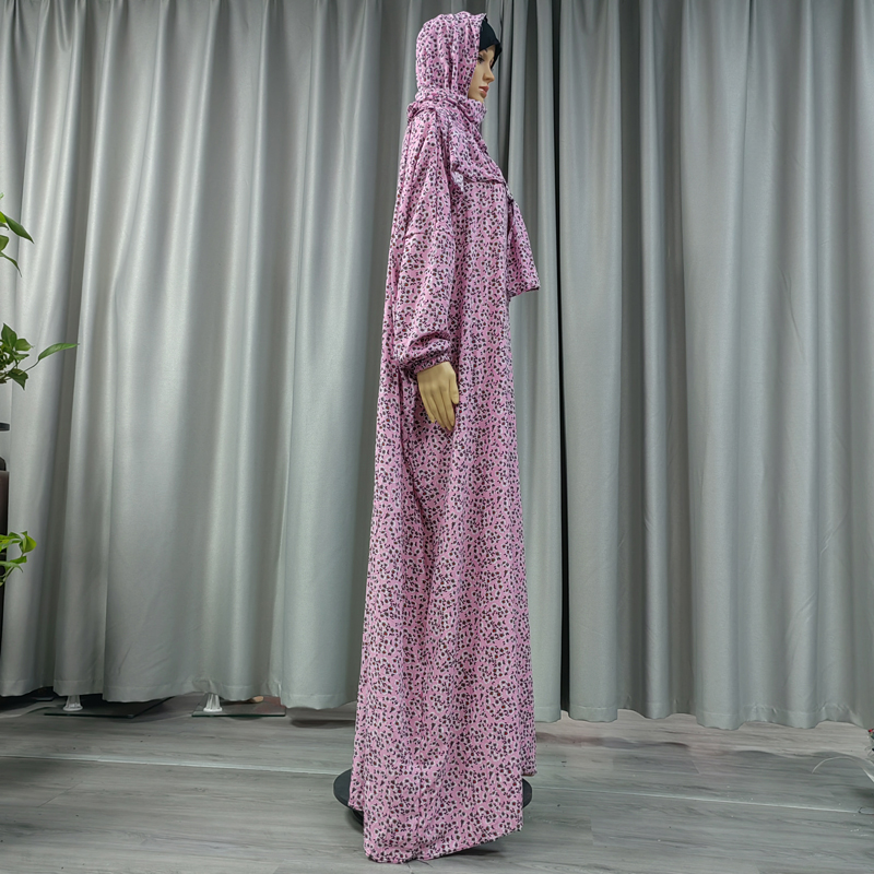 Carefully introduce you to this Muslim dress, the hooded design makes your scarf more convenient, the fresh color of the printed design is not only modest but also won’t lose fashion flavor, high-quality fabric rayon cotton is more comfortable to wear on the body