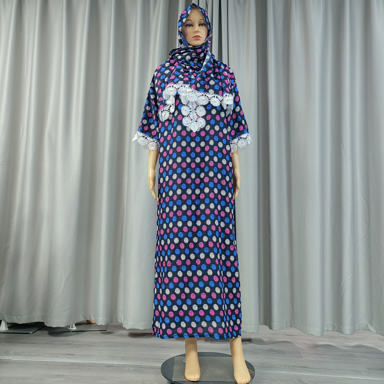 New Cotton Dubai African Women Clothing Dashiki Casual Floral Robe Fashionable lace Summer Day dress Muslim Abaya Short Sleeves