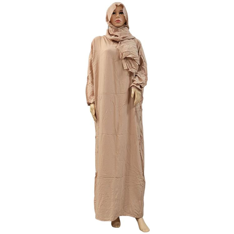 NEW Model Ramadan Prayer Muslim Solid Color Women Dubai Turkey Caftan Middle East Ladies Hijab Scarf Robe Dress Solid color Cotton Abaya Dress