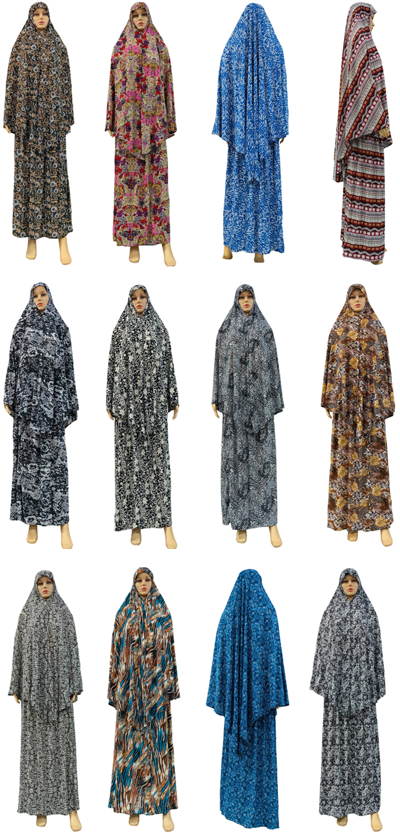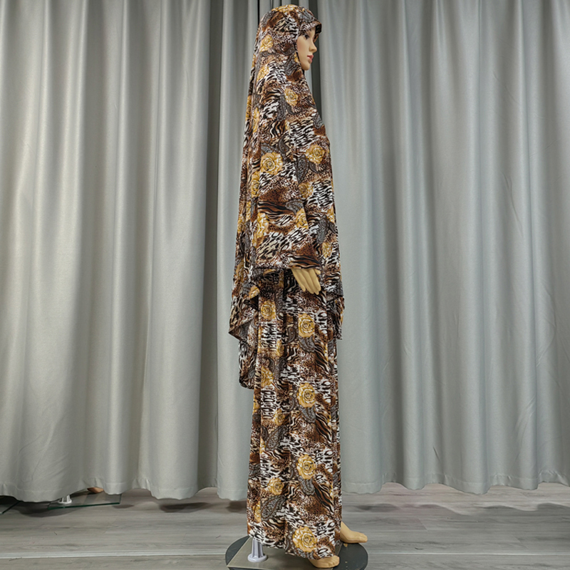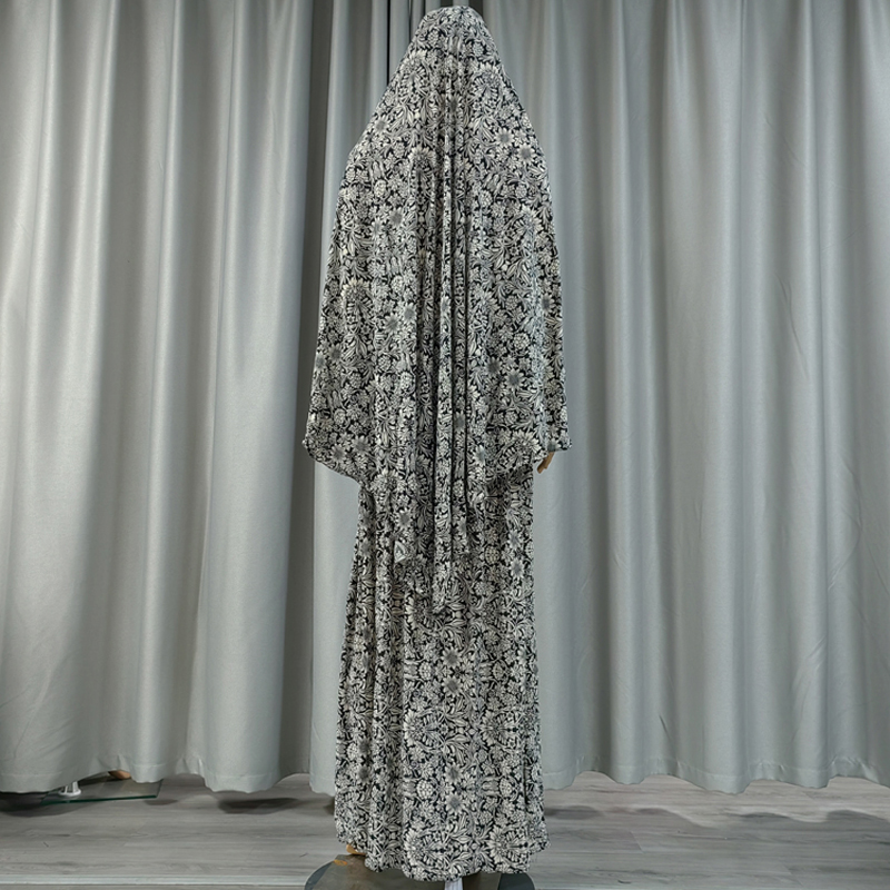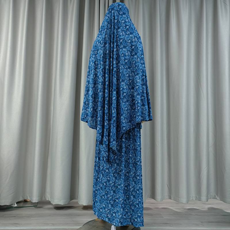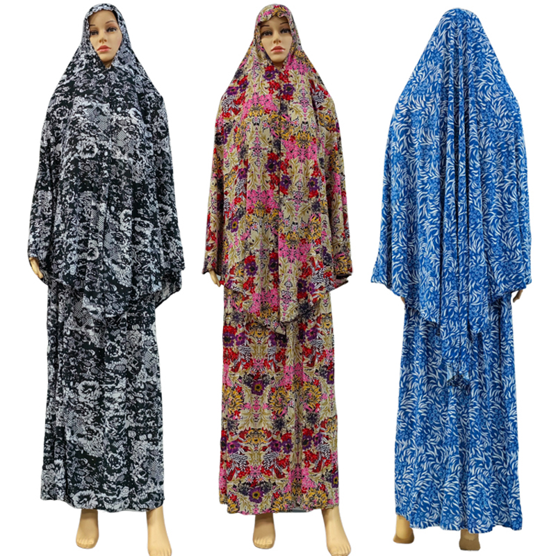 Newest Eid Muslim Jilbab Overhead Scarf Skirt Set Khimar Long 47 inch Hijab Headscarf Abaya Floral Prayer Islamic Modest Clothing Muslim Middle East woman Headscarf robe dress