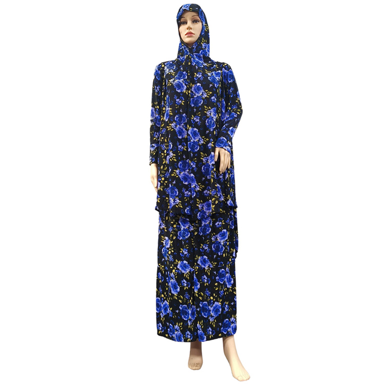 Popular Design Muslim Full Cover Prayer Abaya Dress Ethnic Small Floral Print Ramadan Islamic Middle East Dress Traditional Female Two Piece Women Hijab Jilbab Maxi Robe