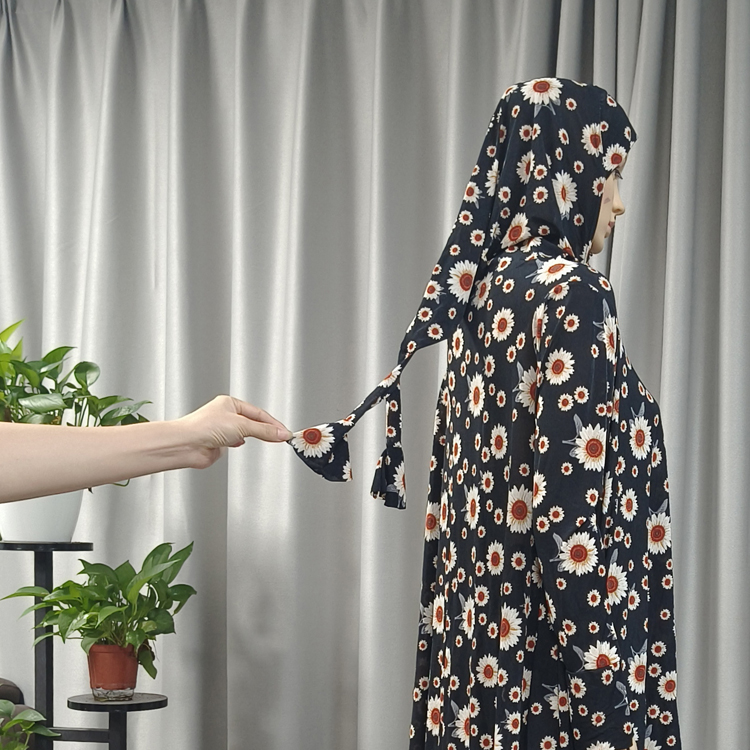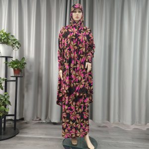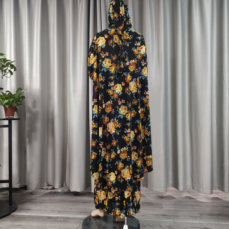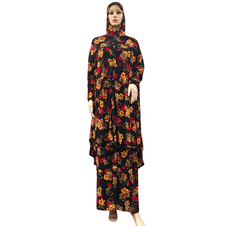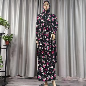 Popular Design Muslim Full Cover Prayer Abaya Dress Ethnic Small Floral Print Ramadan Islamic Middle East Dress Traditional Female Two Piece Women Hijab Jilbab Maxi Robe