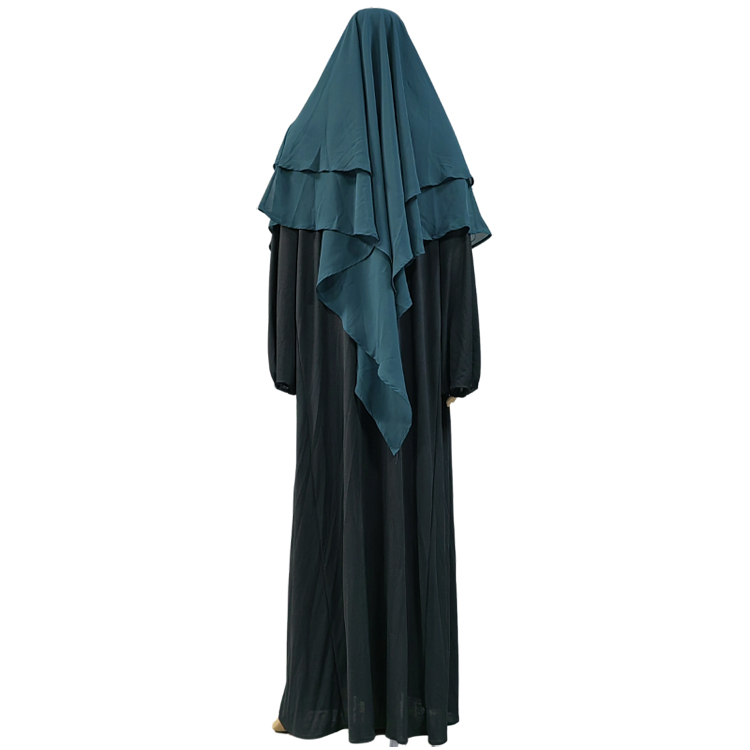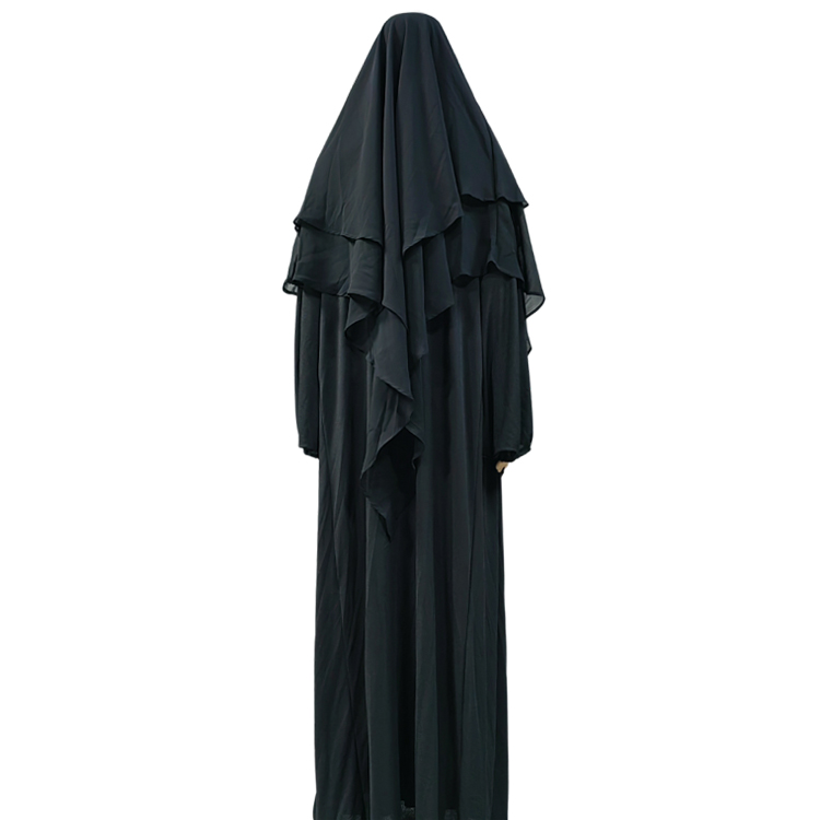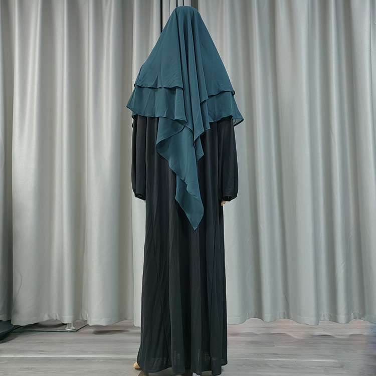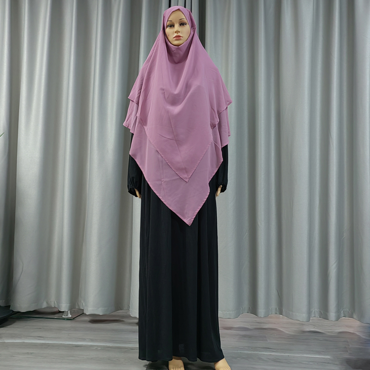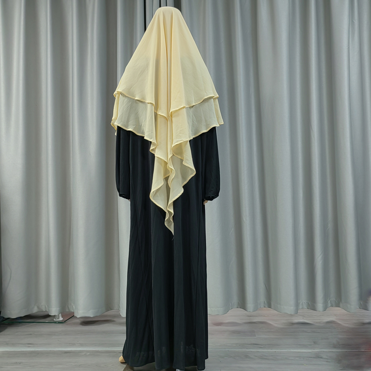 Super Long Hooded 2+2 Layers Chiffon Hijab Khimar Islam Abaya Turban Hijabs for Woman Head Scarf Headwraps Muslim Ramadan Solid