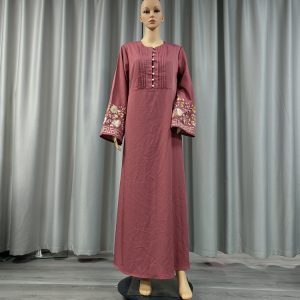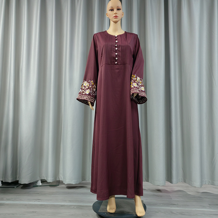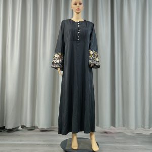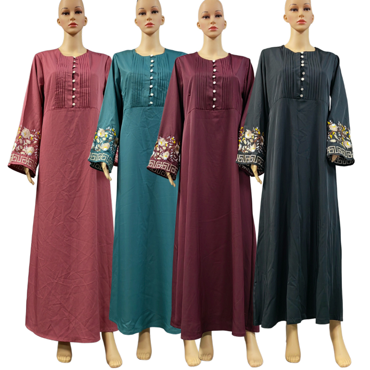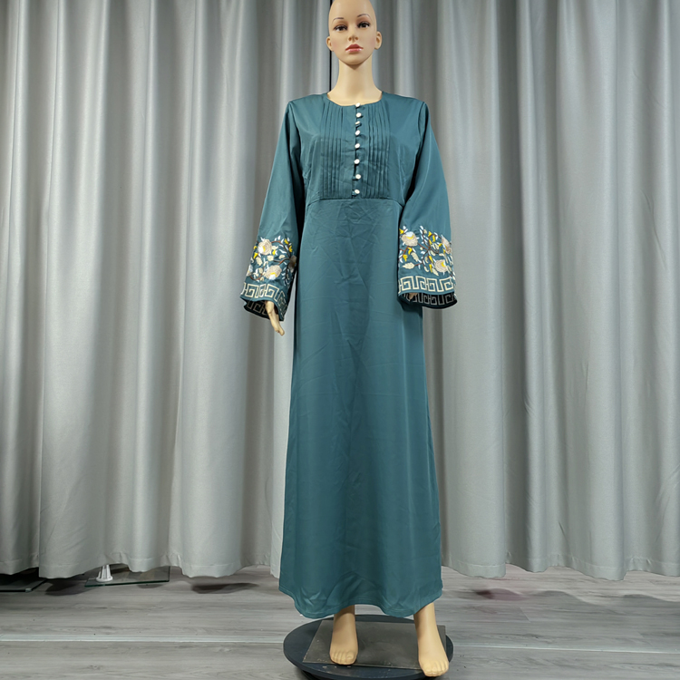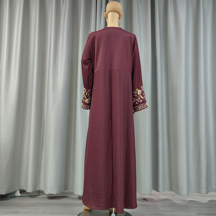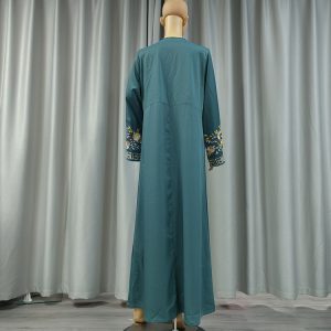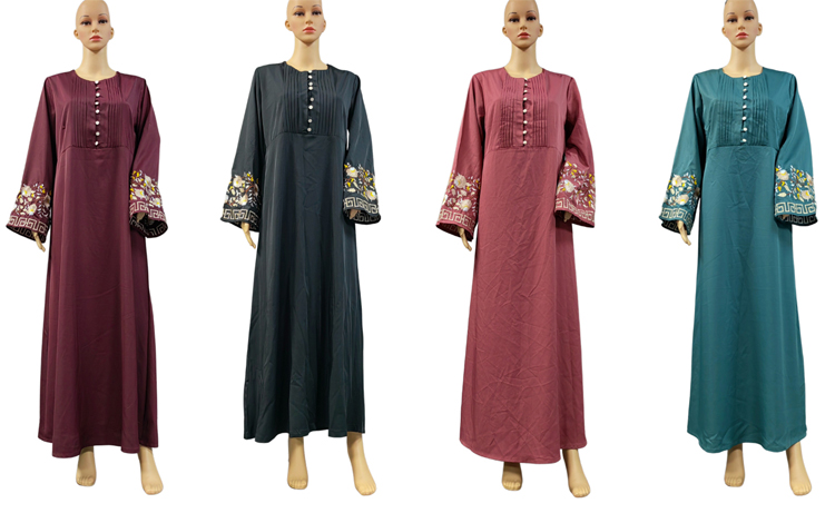 This Muslim dress is a hoodless design, its neckline buttons and shoulder design give people look very dignified design, cuff embroidery more dazzling, the variety of colors give you more choices