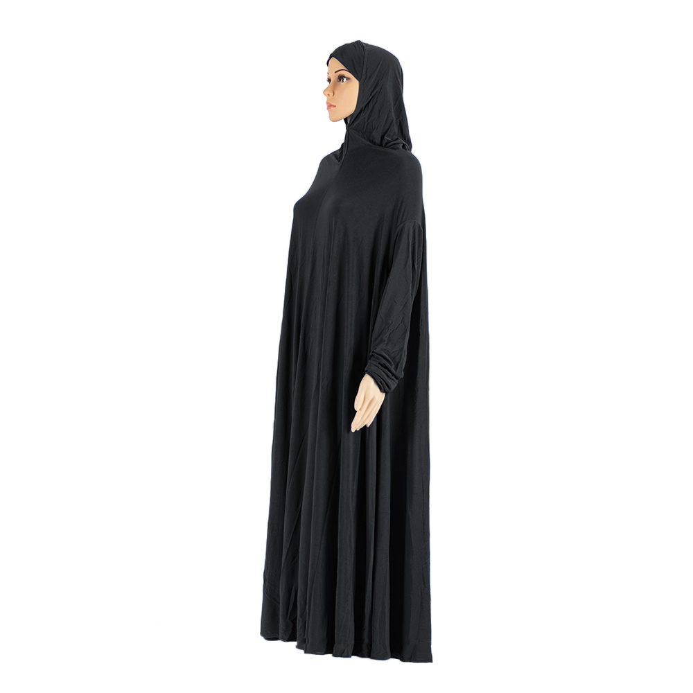 Wholesale Dubai Solid Color Polyester Muslim Loose Bat Long Sleeve Hooded Islamic Ladies Robe