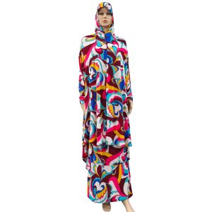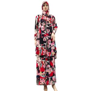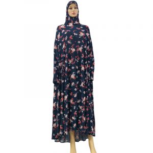 Muslim Full Cover Prayer Abaya Dress Ethnic Small Floral Print Ramadan Islamic Dress Traditional Female Two Piece Women Hijab Jilbab Maxi Robe