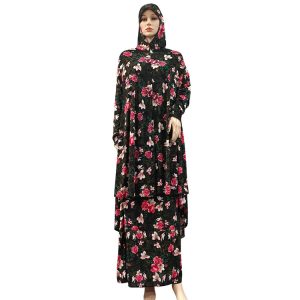 Muslim Full Cover Prayer Abaya Dress Ethnic Small Floral Print Ramadan Maxi Robe Islamic Traditional Turkey Female Two Piece Women Hijab Jilbab