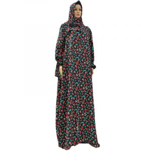 Muslim Rayon Abayas Women 2023 Prayer Dubai Turkey Middle East Femme Robe Hijab Scarf Floral Loose African Dress Turban Attached