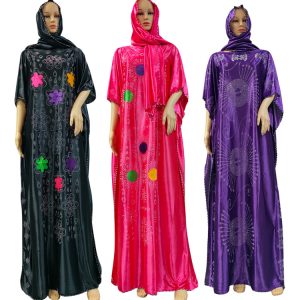 2023 African Summer Bright Colors Kaftan Muslim Women Dresses India Caftan Traditional Wear Silk Satin Africa Femme Maxi Casual Abaya With Scarf hijab boubou
