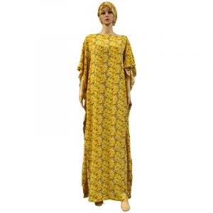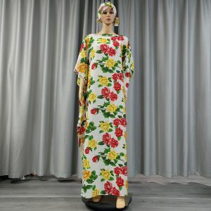 2023 New Muslim Dress African elegant temperament Women Abaya Dress with Scarf Dashiki Oversized long skirt Floral Printed Short Sleeve Polyester Cotton Loose Dress